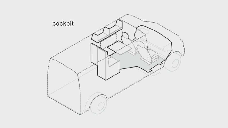- Modulaire camper indeling waarbij bedden en stoelen modulair aanpasbaar zijn per reis. Daarnaast is elke interieurdeel makkelijk verwijderbaar en dus DIY aan te passen.